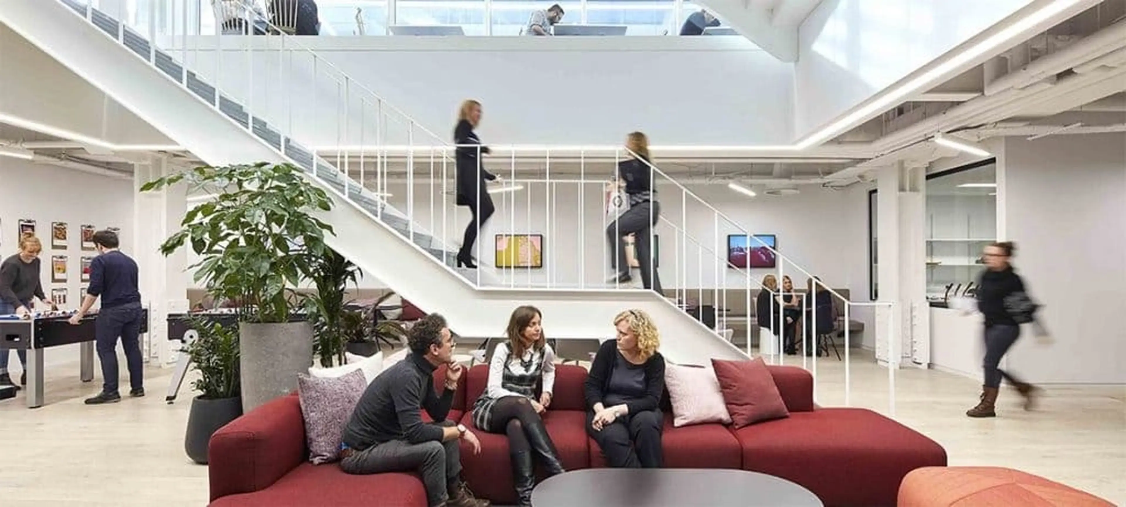 The biophilic design successfully brought the outside in, creating an environment that supports relaxation and well-being. The combination of fruit trees, a sensory garden, and trailing plants across various levels enhanced both aesthetic appeal and workplace productivity. Employees have responded positively to the varied planting arrangements, which provide a refreshing contrast to the office's modern architecture, making the office a more inviting space.
