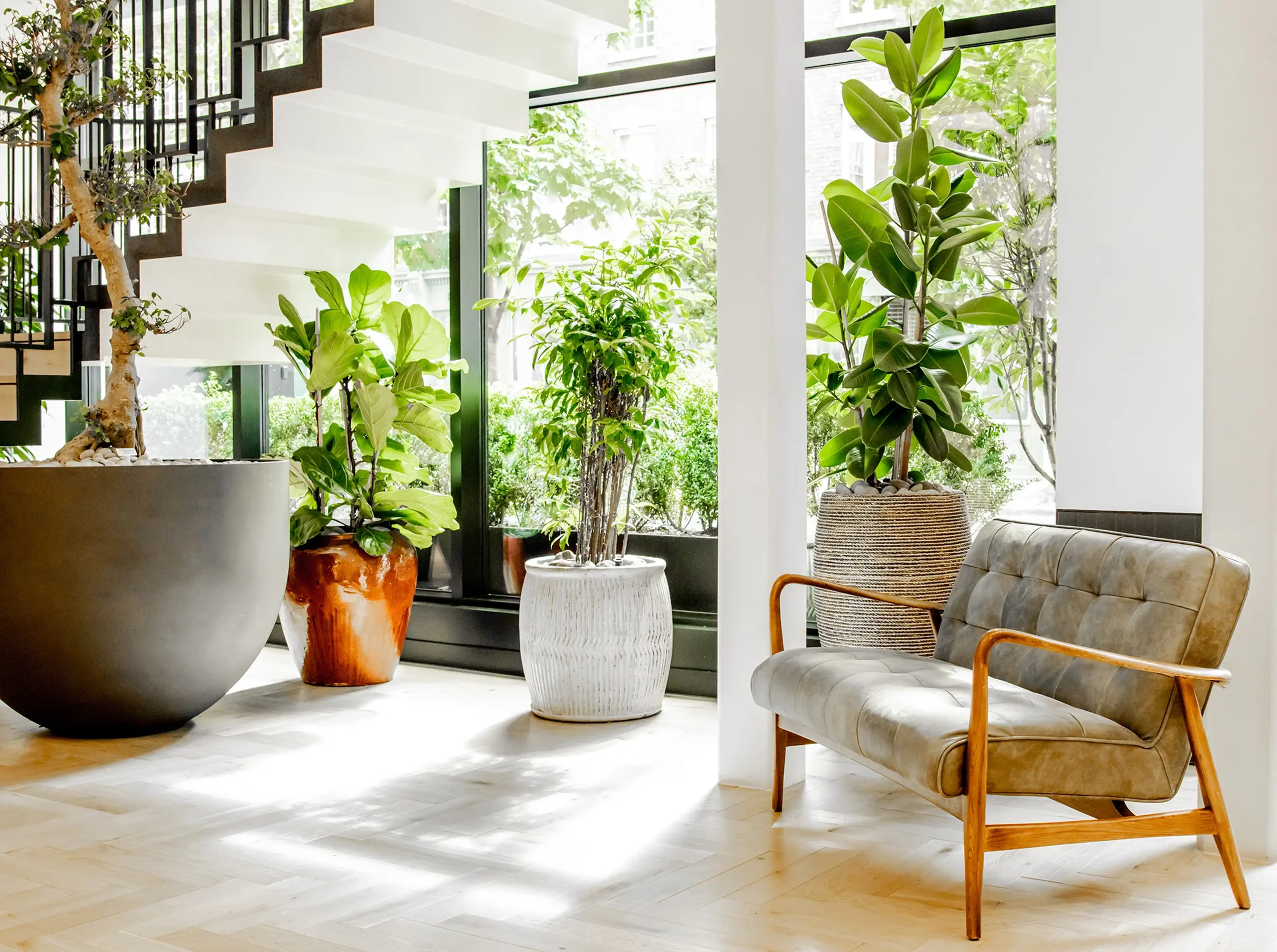 We carefully select the right plants for each space, considering factors like light, scale, and style, to complement the interior design.